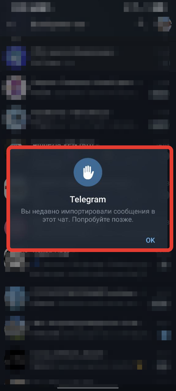 В открывшемся окне Telegram появится информационное уведомление о предстоящем импорте. Нажмите кнопку «ИМПОРТ» для подтверждения.