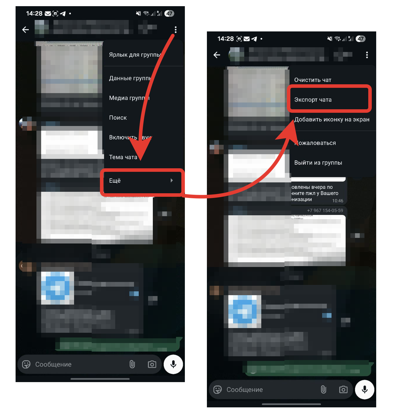 - Выберите пункт «Экспорт чата».