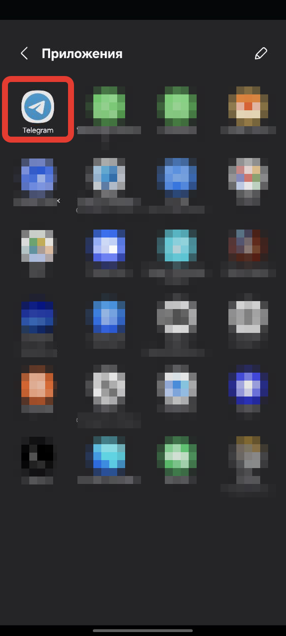 В списке приложений найдите и выберите «Telegram».