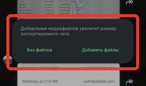 - «Без медиафайлов» – будут перенесены только текстовые сообщения. Фотографии, видео, документы и другие файлы экспортированы не будут.
