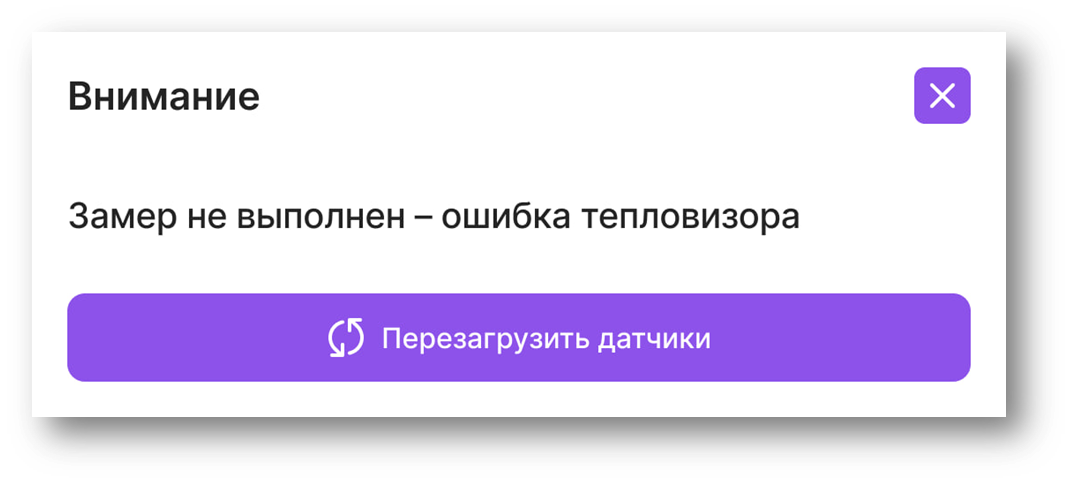 На экране появляется всплывающее окно (попап) с уведомлением о необходимости перезагрузки датчика тепловизора. Это означает, что датчик ушел в ошибку и временно недоступен