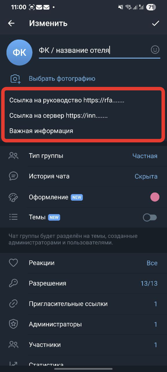 В поле «Описание группы» необходимо добавить ключевую информацию для всех участников.